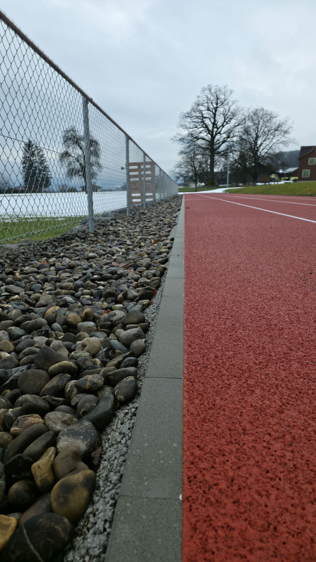 Zu Beginn der Arbeiten erfolgten der Rückbau der bestehenden Laufbahn sowie die fachgerechte Entsorgung der vorhandenen Materialien. Anschliessend wurde der Unterbau neu erstellt und für den Aufbau des Sportbelags vorbereitet. Eine präzise Planie sowie der Einbau der erforderlichen Fundations- und Tragschichten bildeten die Grundlage für eine langlebige und belastbare Sportanlage.